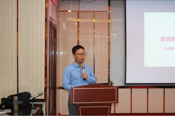 李天兵副总经理介绍缓混肥是由多种缓控释肥经过科学组合复配而成,肥料养分根据根际需求均匀释放,可以满足水稻一生养分需求。在保持稳产和增产的前提下,采用机插缓混一次施肥技术较常规高产施肥比较可减少施氮量20-25%。一次施肥加上穗肥精确诊断,可实现一次轻简施肥、一生精准供肥的技术目标。