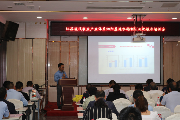 会议主要有两个议程,一是诺丽慧农符泽经理向农户培训测土配方施肥“新五个一”平台;二是汉枫缓释肥料(江苏)有限公司李天兵副总经理培训水稻机插缓混一次施肥技术中专用缓混肥料的高效施用技术。