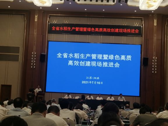 为加强水稻苗期生产管理,发挥绿色高质高效示范片带动作用,2021年7 月15-16日,江苏省农业农村厅种植业管理处和江苏省农业技术推广总站在宿迁泗洪县组织召开全省水稻生产管理暨绿色高质高效创建现场推进会。中国工程院院士张洪程、江苏省农业农村厅总农艺师唐明珍、泗洪县人民政府县长耿晓云、中共泗洪县委员会副书记石俊杰、泗洪县人民政府副县长孙建,全省各设区市农业农村局种植业管理处、农技推广(作栽)站,有关县(市、区)农技推广(作栽)站(中心),有关单位相关负责人,各设区市、水稻重点县(市、区)农业农村局分管领导等300多人参会。